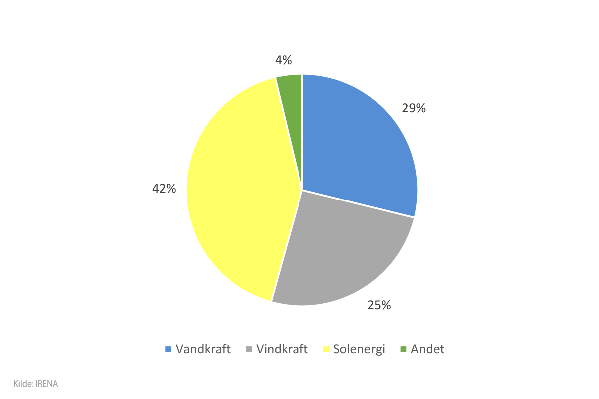 Relativ andel af den globale produktionskapacitet for vedvarende energikilder efter energikilde i 2024