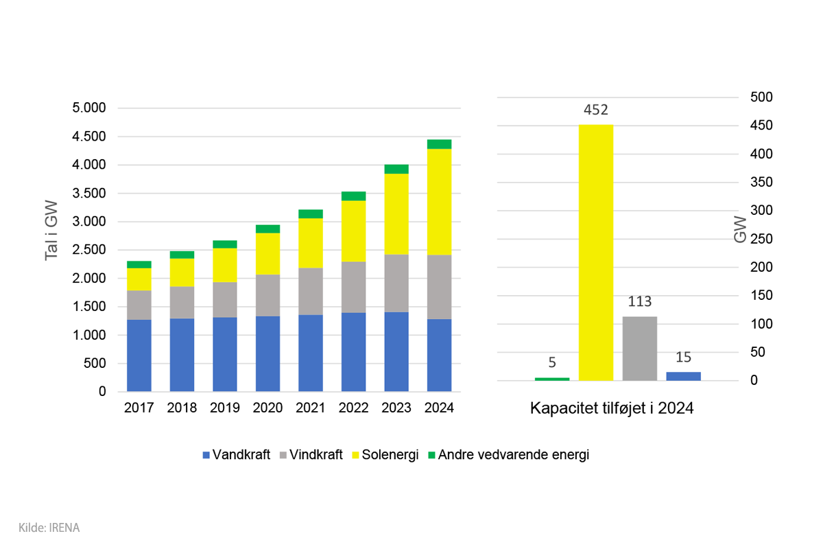 Med en vækstrate på 32 % repræsenterer solceller den største vækst blandt vedvarende energikilder på verdensplan frem til 2024.