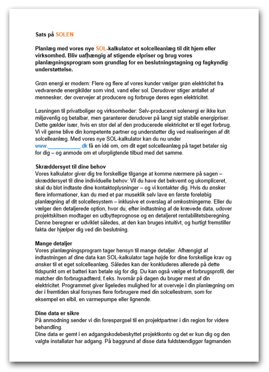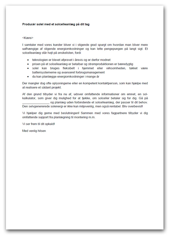 - Henvisning til solcelletilbuddet på din hjemmeside
