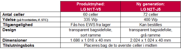 Vores partner LG Solar har annonceret tre ændringer i sit produktsortiment: NeON R Prime (Q1K-V5), NeON 2 BiFacial med 60 celler (N1T-V5) og den nye generation af NeON 2 BiFacial med 72 celler (N2T-J5).