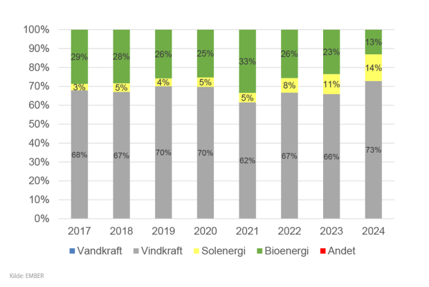 Ny markedsgraf: Andelen af vedvarende energier i elproduktionen