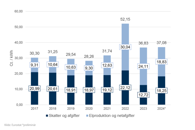 Ny markedsgraf: elpriser for private husholdninger i Danmark