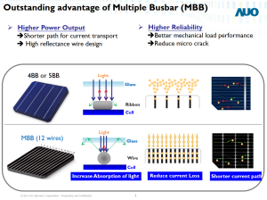 In comparison to standard cells which feature four or five busbars, respectively, the SunBravo cells have 12 thin wires. This product feature is particularly advantageous in terms of the power output, thanks to the shorter path for the current transport and the reflectance wire design. Due to the better mechanical load performance, the reliability of the modules is increased. This is demonstrated by extensive AUO tests which go far beyond the IEC standards.
