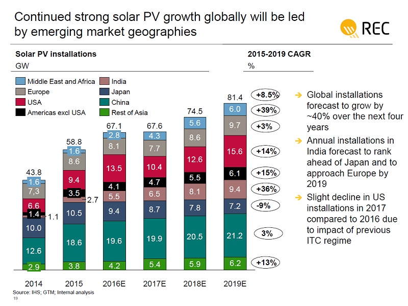 As the module shipments are running at full annual production capacity of 1.3 GW since the end of the second half-year 2015, REC has announced another expansion of its production capacities to 1,7 GW by the end of 2016.