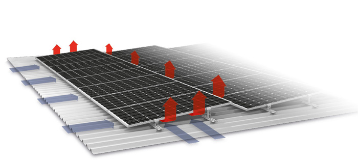 Thanks to MiniFive, modules can now be elevated by 5 ° (hence the name). This improves the irradiation angle and the overall ventilation between the roof and the modules, thus, leading to a substantially greater energy yield.