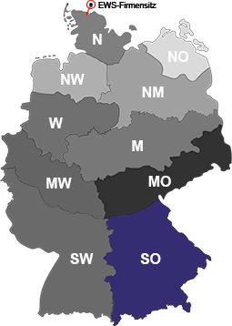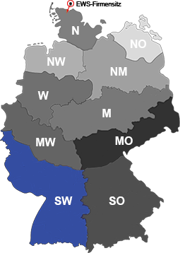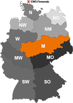 Über die PLZ-Suche oder die Länderauswahl gelangen Sie schnell und einfach direkt zu dem für Sie zuständigen Team für alle vertrieblichen Belange bei EWS