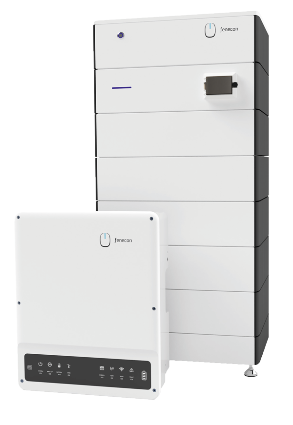 FENECON Home: Beim modularen dreiphasigen Heimspeichersystem gesellt sich zum notstromfähigen Hybrid-Wechselrichter (mit 10 kW Leistung) eine kompakte erweiterbare Hochvoltbatterie mit einer frei wählbaren Kapazität von 8,8 bis 66 kWh. Dank integriertem Energiemanagement-System (genannt FEMS) können Apps, Wallboxen und andere Hardware herstellerunabhängig an den Home eingebunden werden. Weitere Informationen finden Sie hier.