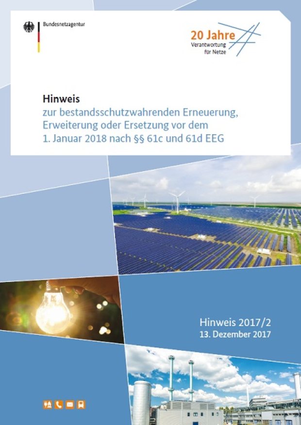 Link: Bundesnetzagentur – Hinweis zur bestandschutzwahrenden Erneuerung, Erweiterung oder Ersetzung vor dem 1. Januar 2018 nach §§ 61c und 61d EEG