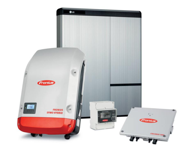 Zusammen mit dem Fronius Symo Hybrid Wechselrichter, dem Fronius Smart Meter sowie der Fronius Checkbox 500V als zusätzliche Mess- und Sicherheitskomponente bietet dieses System eine kosteneffiziente, namhafte Alternative zur bereits verfügbaren Lösung mit der Fronius Solar Battery.