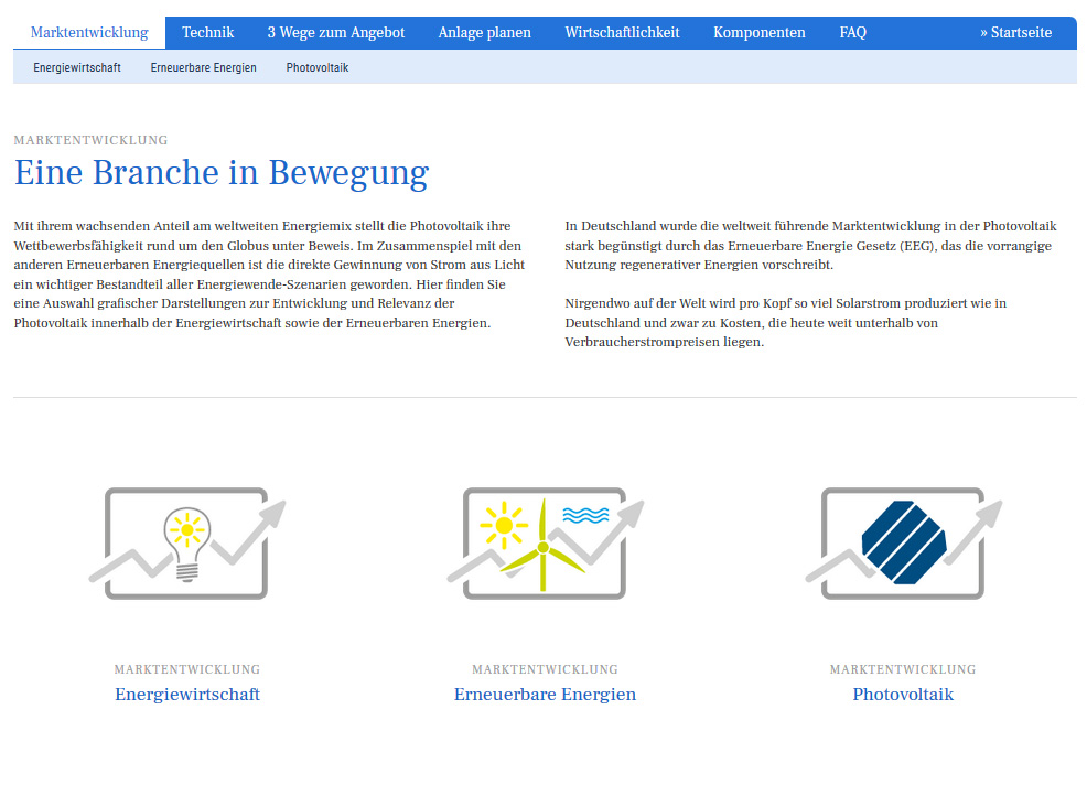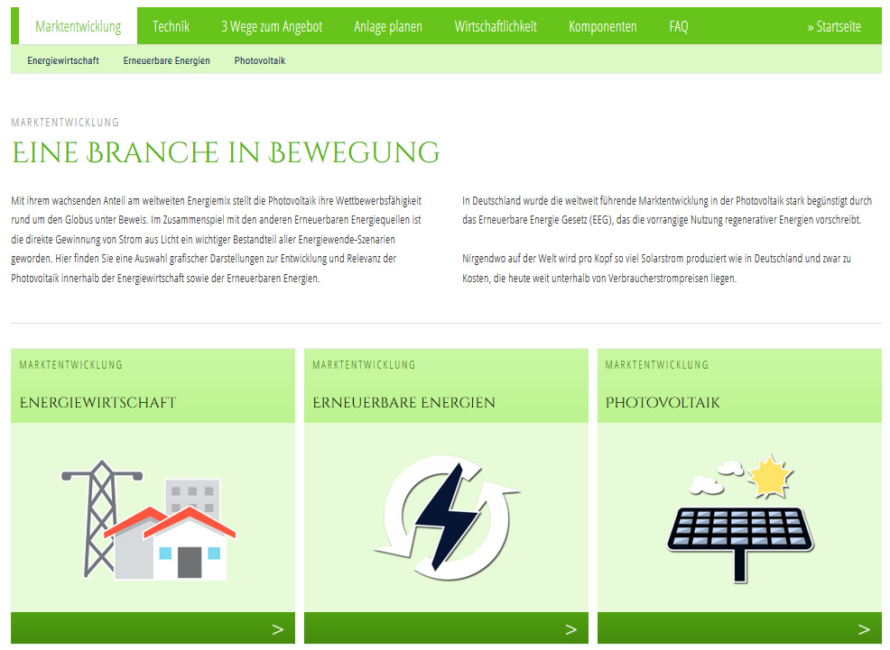Der Aufbau und die ständige Pflege einer Firmenwebsite ist äußerst zeit- und kostenintensiv. Mit QuickContent, unserem neuen Solarstrom-Website-Konfigurator, unterstützen wir Sie ab sofort dabei, Ihren Online-Auftritt immer aktuell und ansprechend zu halten.