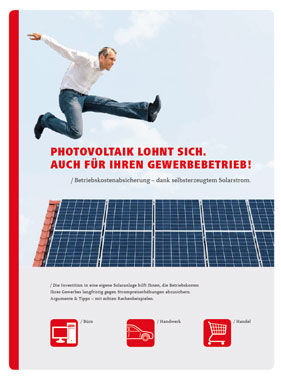 Mit der Kampagne PV lohnt sich gibt Fronius Fachpartnern und Handwerksbetrieben Argumente und Instrumente an die Hand, welche die Vorteile und Attraktivität von Solarstrom sowie dessen Nutzung gegenüber Eigenheimbesitzern bzw. Verbrauchern herausstellen. Jetzt hat Fronius diese Aktion ausgeweitet und speziell auf Gewerbebetriebe ausgerichtet. Eine neue Informationsbroschüre mit anschaulichen Beispielen belegt, dass selbst erzeugter und genutzter Solarstrom auch für Betriebe lohnenswert ist und die Betriebskosten langfristig reduziert. Nutzen Sie diese zur Information von Gewerbetreibenden in Ihrem Einzugsgebiet oder planen Sie Informationsveranstaltungen gern auch in Kooperation mit uns. Wir unterstützen Sie bei Ihrem Vorhaben.