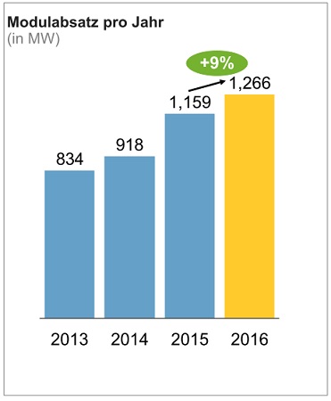 Europa, vor allem Deutschland, Großbritannien und die Niederlande, bleibt ein wichtiger Abnehmer für den Hersteller. Insgesamt wurden 406 Megawatt an europäische Kunden geliefert. Der Marktanteil in Deutschland stieg auf 13 % und konnte mit einem Absatz von 200 MWp sogar verdoppelt werden.