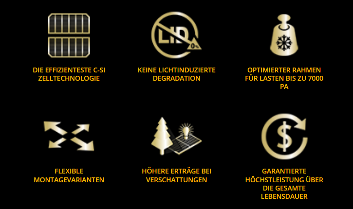 Auch die jährliche Degradation ist deutlich geringer als beim Vorgängermodell. Diese beträgt maximal 0,25 % (anstatt 0,5 %), sodass auch nach 25 Jahren eine Leistungsabgabe von mindestens 92 % der Nennleistung garantiert ist.