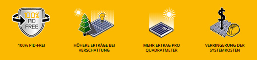 - Halbierte Zellen und die neuartige Zellanordung mit zwei separaten Zwillingshälften wirken sich bei verschatteten Modulen besonders positiv auf die Gesamtleistung aus.