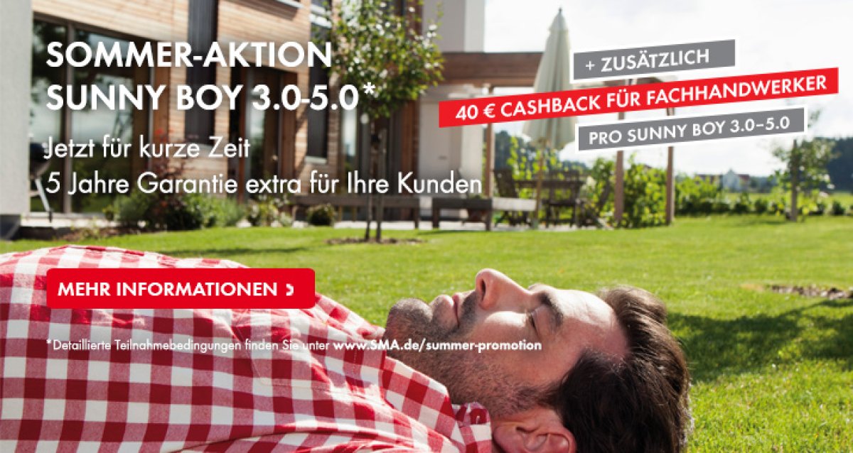 27.06.2018 - SMA Aktion 5+5: Sunny Boy 3.0-5.0 installieren – kostenlose Garantieverlängerung und Cashback kassieren: Jetzt verlängert!