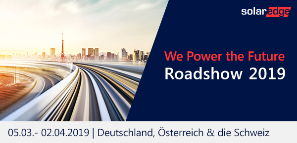 Unter dem Motto „We Power the Future“ steht die diesjährige SolarEdge Roadshow, zu der wir Sie herzlich einladen. Bei der Veranstaltungsreihe durch 14 Städte in Deutschland, Österreich und der Schweiz geht es in erster Linie um innovative Produkte und Lösungen, die praktische Unterstützung für die tägliche Arbeit – und den persönlichen Austausch mit Ihnen.