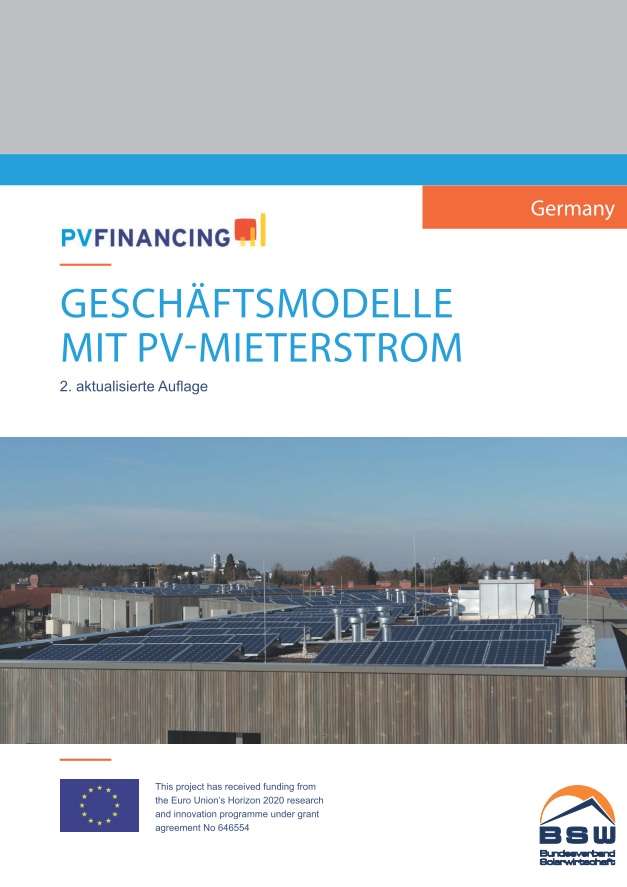 Aus diesem Anlass hat der BSW-Solar die Info-Broschüre Geschäftsmodelle mit Mieterstrom neu aufgelegt.