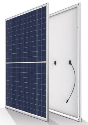 - Polykristallines Modul mit 120 Halbzellen (silberner Rahmen, weiße Rückseitenfolie, 290 Wp)