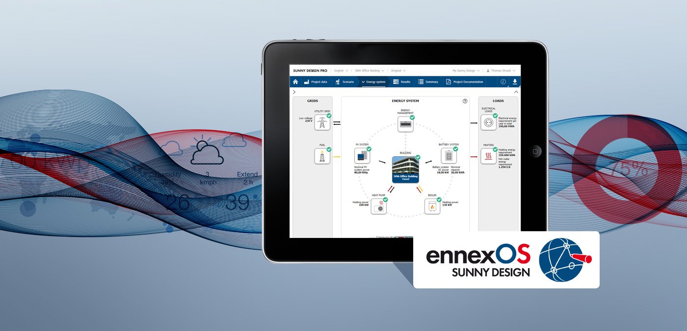 In der kostenpflichtigen Sunny Design Pro-Version kann neben der Solaranalage, dem Batteriespeicher und den elektrischen Verbrauchern zum Beispiel auch das integrierte Energiemanagement der elektrischen und thermischen Systeme bei der Planung berücksichtigt werden.