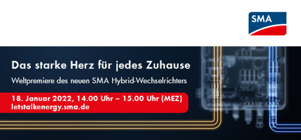 Seien Sie am 18. Januar 2022 von 14:00 bis 15:00 Uhr dabei, wenn SMA das Herzstück ihres Energy System Home für Solar- und Speicheranwendungen im Eigenheimbereich enthüllt: den Sunny Tripower Smart Energy. Mit der neuen 2-in-1-Lösung ist der Weltmarktführer aus dem hessischen Niestetal angetreten, den Eigenverbrauch von Solarstrom ab sofort einfacher und komfortabler zu gestalten.