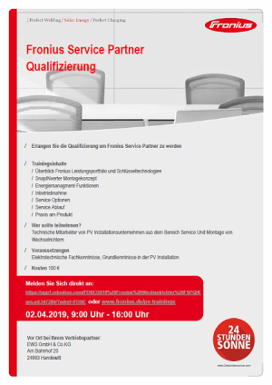 14.02.2019 - Fronius Trainings im April 2019 bei EWS: Jetzt anmelden!
