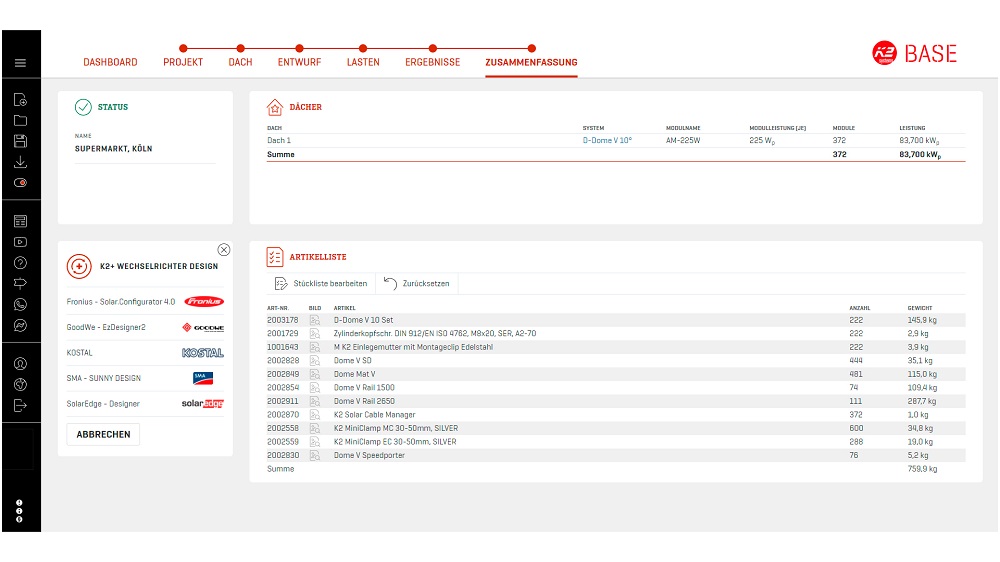 Die Dome 6 Systeme für Flachdächer sowie die MicroRail Systeme für Well- und Trapezblechdächer (wir berichteten) können bereits mit dem K2 Base 3.0 geplant werden.