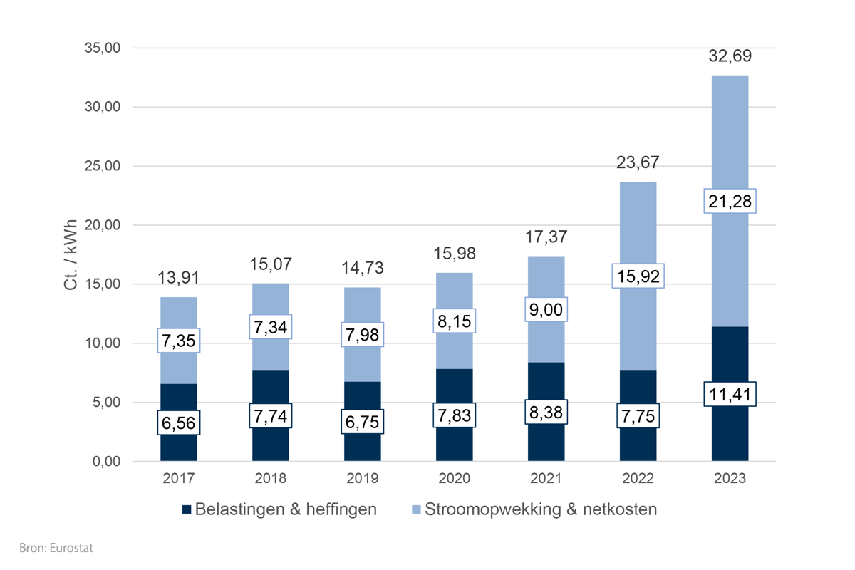 Elektriciteitsprijs voor particuliere huishoudens in Nerderland 2017 – 2023