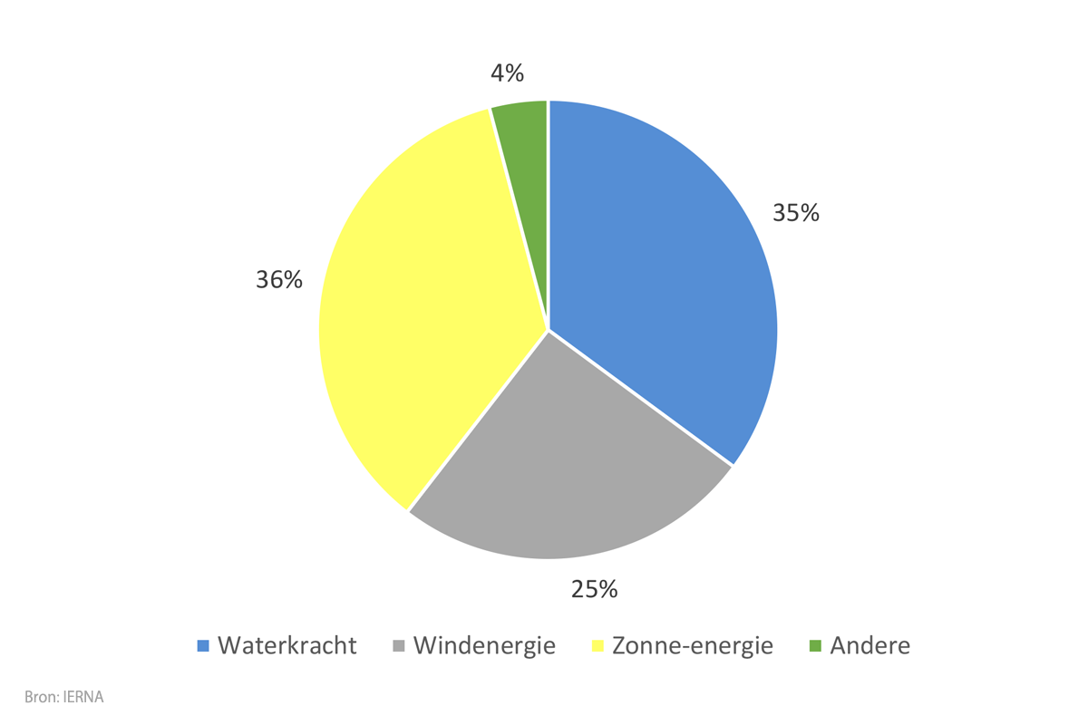 Relatief aandeel van energiebronnen in de elektriciteitsopwekking uit hernieuwbare energiebronnen in Nederland