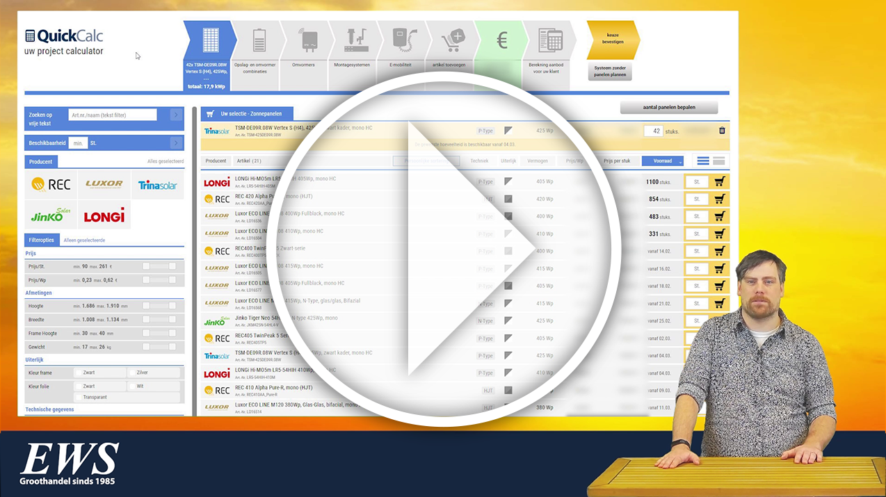 Bekijk nu QuickCalc 3.0. PV-professionals hebben hier toegang tot de volledige reeks online tools van EWS.