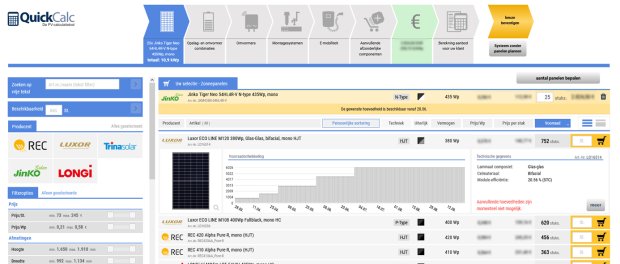 Iedereen die de unieke gebruikersbegeleiding in het QuickShop-inkoopportaal heeft ervaren, zal het zeer waarderen dat dit met de nieuwste versie van QuickCalc nu ook geldt voor het ontwerpen en berekenen van complete systemen. Op elk moment van de dag kunnen PV-professionals nu automatisch de meest gunstige, technisch zinvolle productcombinaties voor elk zonnestroomproject laten zien en evalueren, en ook meteen zien in hoeverre de gebruikte componenten in de toekomst beschikbaar zullen zijn.