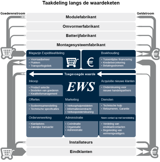 EWS fungeert als schakel op alle niveaus van de waardeketen en ondersteunt alle deelnemers door de verdere ontwikkeling van efficiënte structuren, processen en routines.