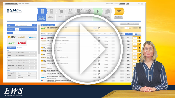 W kompaktowym filmie pokazujemy, jak QuickCalc 3.0 może wspierać procesy zakupowe firm zajmujących się instalacją PV. Oprócz funkcji wyboru i filtrowania, w centrum uwagi znajdują się wyświetlacze dostępności produktów w czasie. EWS jako hurtownia oferuje swoim klientom nieosiągalną do tej pory pewność planowania z nawet sześciomiesięcznym wyprzedzeniem, a tym samym największe możliwe zaangażowanie w tej częsci dostawczej. Oczywiście za pomocą nowego kalkulatora systemowego z EWS można również uzgodnić wszystkie szczegóły logistyki wysyłkowej, np. dostawę w żądanym terminie bezpośrednio na plac budowy lub indywidualną kalkulację kosztów transportu.