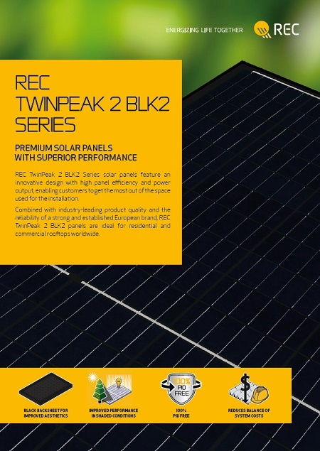 Our long-standing module supplier REC has added a fullblack variant to its TwinPeak product line. The new TwinPeak 2 BLK2 features fullblack polycrystalline PERC half-cut cells which have exclusively been manufactured for this series.