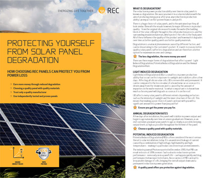 REC has issued a brochure on the degradation of solar panels which is available as download.