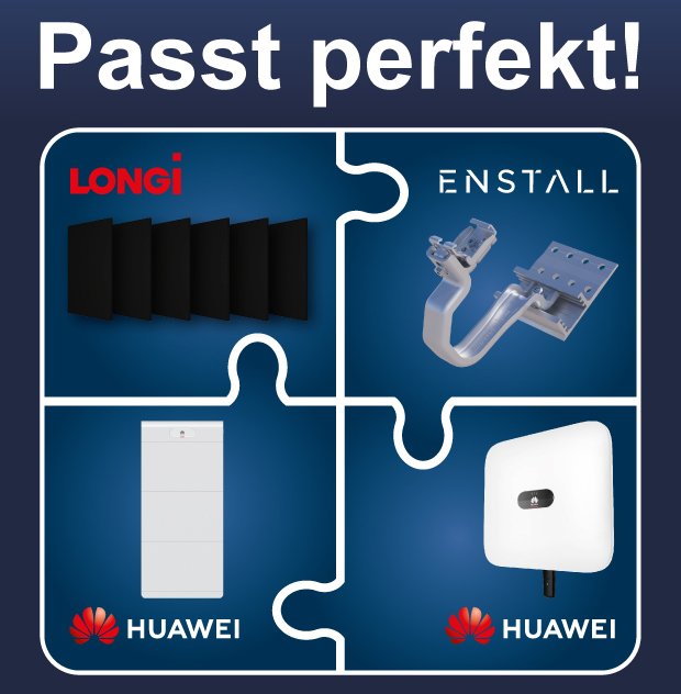 Bekannt als einer der führenden globalen Anbieter von Informations- und Kommunikationstechnologie, bietet Huawei ein breites Angebot an intelligenten Wechselrichtern, Optimierern, Speichersystemen, Wallboxen und dem übergreifendem Management-System FusionSolar an. Das Portfolio deckt dabei Privathaushalte, Industrie- und Gewerbesysteme sowie Freiflächenanlagen gleichermaßen ab. Im Fokus stehen maßgeschneiderte Wechselrichter- und Speicherlösungen mit hoher Flexibilität, Kompatibilität und eingängiger Handhabung im Alltag. Das Dreamteam für eine effiziente Speicherung von Solarstrom ist die Kombination aus Huawei SUN2000-10KTL-M1 und Solarbatterie Huawei LUNA2000-7/14/21-S1. Der hocheffiziente dreiphasige Wechselrichter mit einer maximalen Effizienz von 98,6 % ermöglicht volle AC-Leistung von 10 kW sowie eine vollständige Akkuladung mit 10 kW. Die Hochvoltbatterie auf Basis von Lithium-Eisenphosphat-Zellen ist dank modularem Design von 7 bis 21 kWh jederzeit erweiterbar.